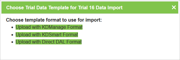 - Download CSV Template - produces a CSV file for importing into KDSmart without any of a trial trait’s results.