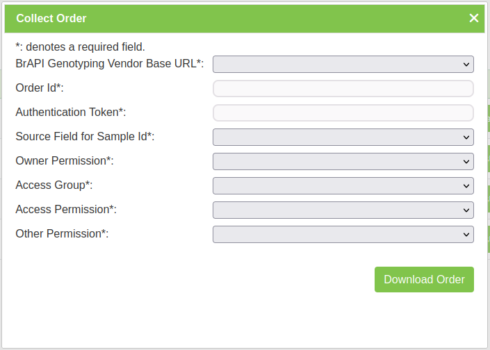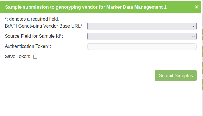 | BrAPI Genotyping Vendor Base URL | Mandatory | Select the vendor BrAPI URL. |