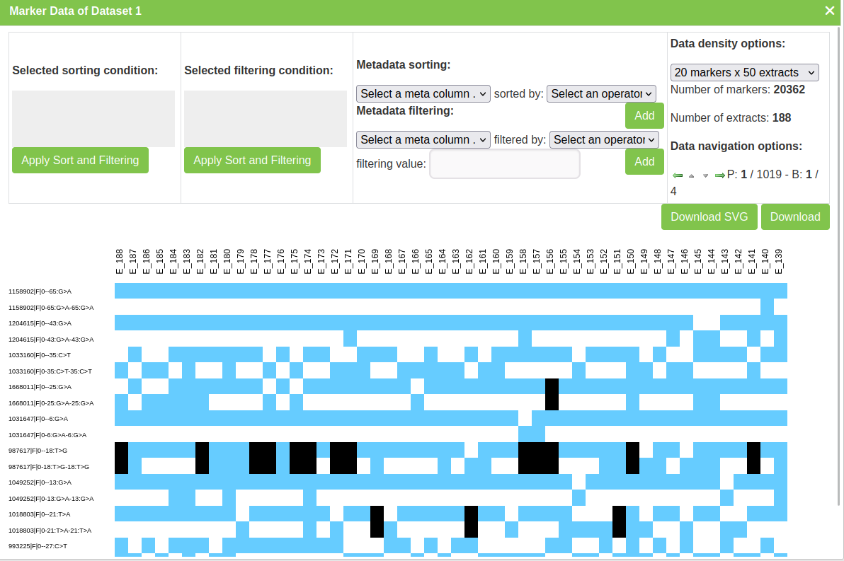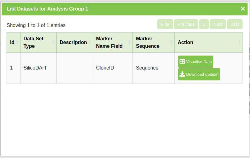 Download Data in the Action Column of the List Datasets Window (for the required marker dataset of a group). This will open the Download Dataset Window as seen in the image below: