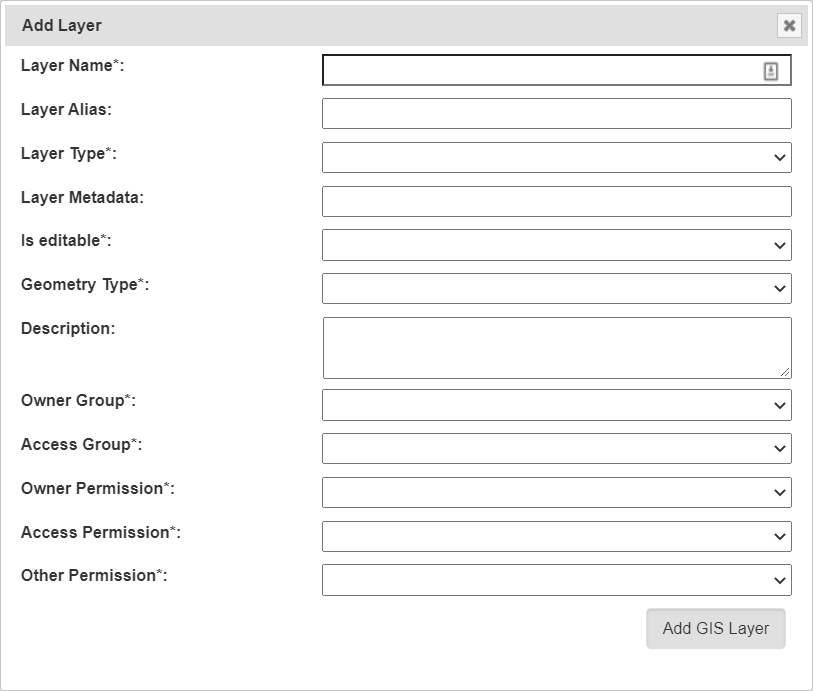 To add a layer, select the Add Layer Button which will display the Add Layer Window.
